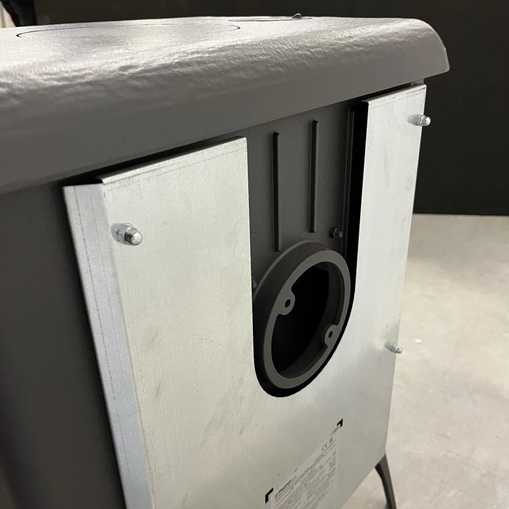 Nejmenší vzdálenost od materiálů citlivých na teplotu musí být z bočních stran a zezadu 40 cm. Materiály citlivé na teplotu v přímé oblasti vyzařování tepla, před kamny, musí být vzdáleny minimálně 120 cm.