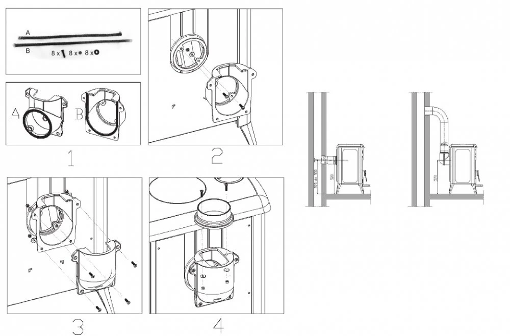 Kamna musí být postavena na vodorovnou plochu, a místnost ve které se instalují, musí mít dostatečné množství čerstvého vzduchu pro spalování.