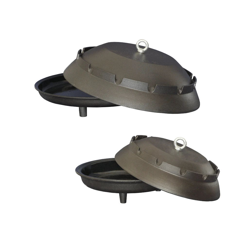 Příprava jídla "pod pekou" je vlastně pečení, ale s chutnějším výsledkem, než pokud dané jídlo připravíte doma klasicky v hrnci a v troubě. Ideální pro práci s pekou je např. venkovní krb, ohniště s rovnou plochou, apod. Peka je vyrobena z litiny, vnitřek je smaltovaný. Váží 13,7 kg.