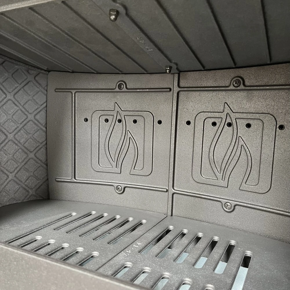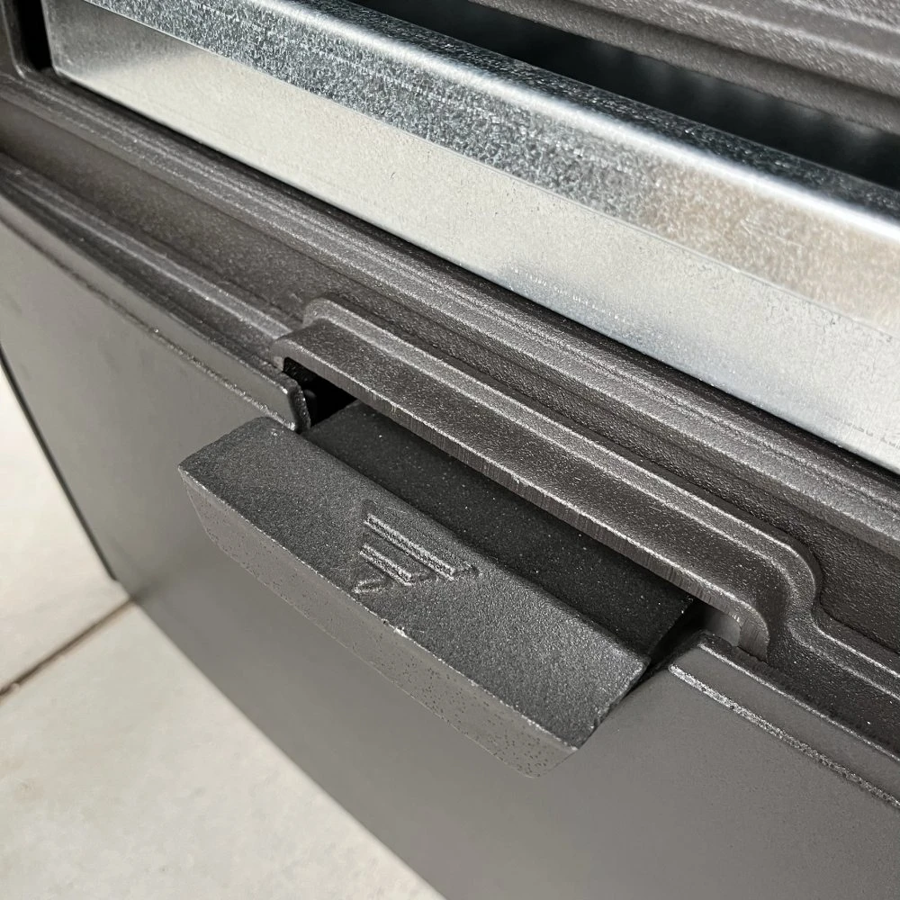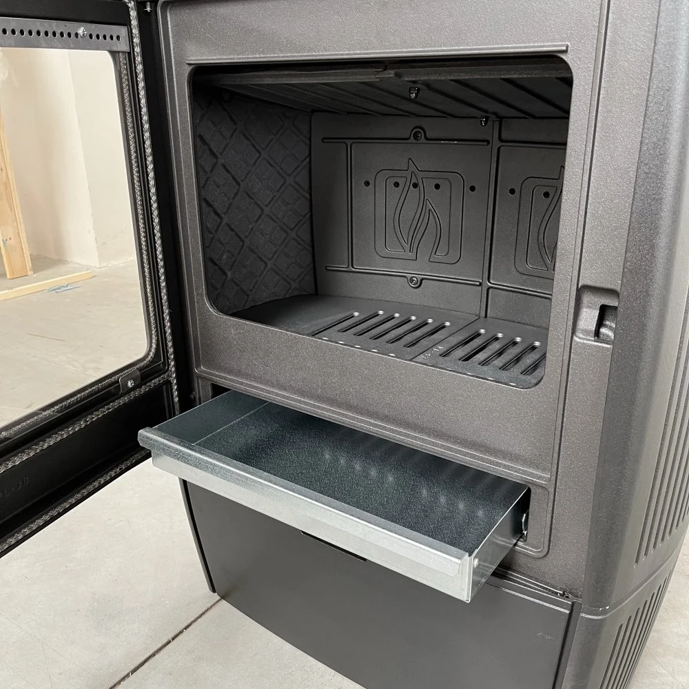 Topeniště mají průhledná keramická skla odolná proti teplotě do 700 °C. Toto sklo poskytuje nádherný pohled na oheň a zabraňuje vzniku jisker a dýmu. Kotel je vybaven regulátorem primárního a sekundárního vzduchu, který reguluje spalování vzduchu, a tedy také jeho výkon. Kvalitní litinová konstrukce zajišťuje dlouhou životnost.