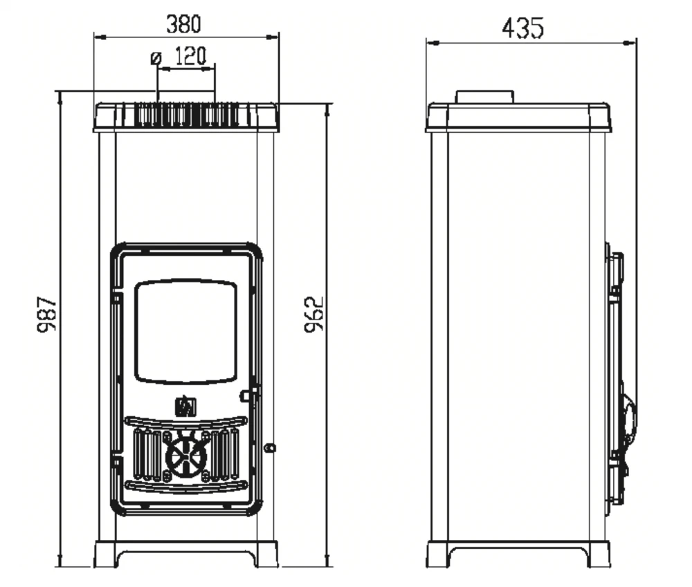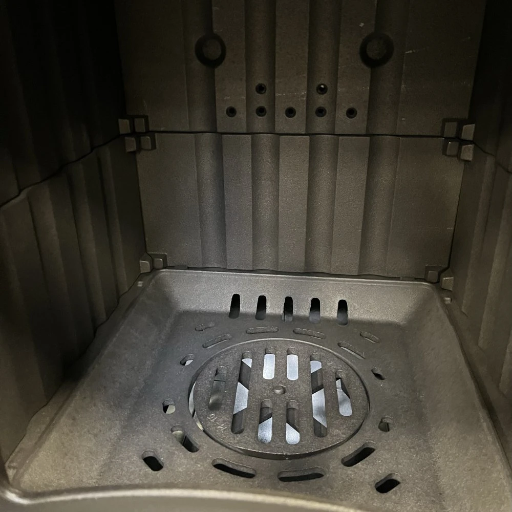 Kamna jsou pečlivě utěsněna a mají vyjímatelnou nádobu na popel. Dveře, rám a krycí plech jsou vyrobeny z kvalitní litiny. Boční panely jsou vyrobeny z vysoce kvalitního, smaltovaného ocelového plechu. Oddělený přívod primárního a sekundárního vzduchu zajišťuje optimální energetický výnos.