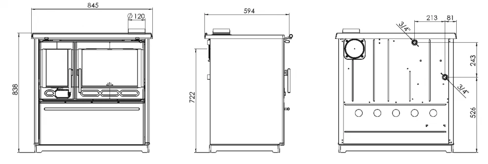 Rozměry sporáku viz obrázek níže: