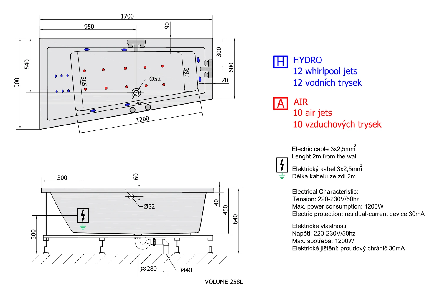 | Vlastnosti | HYDRO AIR masáž |
