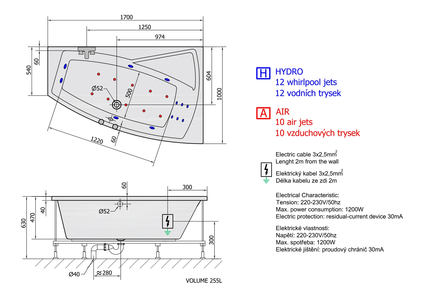 | Vlastnosti | HYDRO AIR masáž |