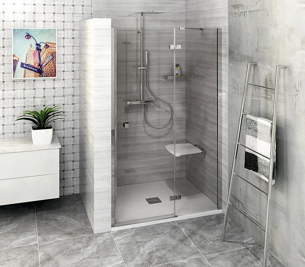 Bezrámové pantové zástěny FORTIS v moderním hranatém designu. Minimalistické pochromované panty v nekompromisním hranatém designu, zevnitř zapuštěné pro snadné čištění a se zvedací funkcí pro pohodlné otevírání. Bezpečnostní čiré sklo v tloušťce 8 mm je ošetřené povrchovou úpravou ANTIDROP pro snadné čištění. Výška 2000 mm. Hranaté pochromované madlo ve stejném minimalistickém designu jako panty.