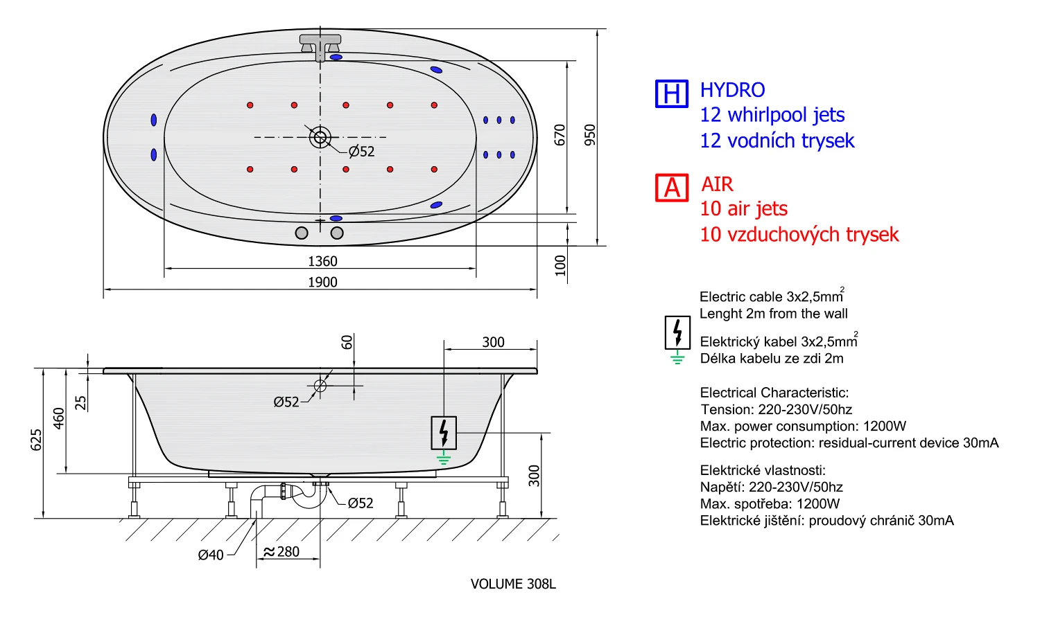 | Vlastnosti | HYDRO AIR masáž |