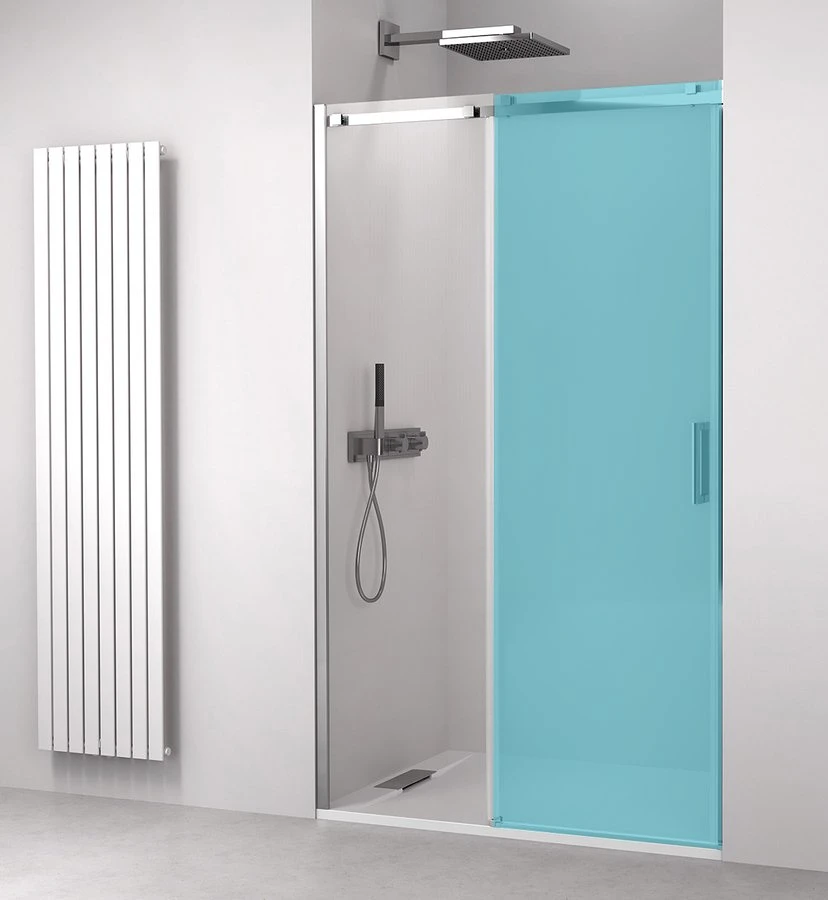 THRON - oblíbený design posuvných zástěn s minimalistickými pohledovými koly, která zajišťují tichý a lehký pohyb masivních skleněných dveří z čirého skla. Úchyty pojezdných kol v hranatém nebo kulatém provedení výrazně mění celkový vzhled dveří.