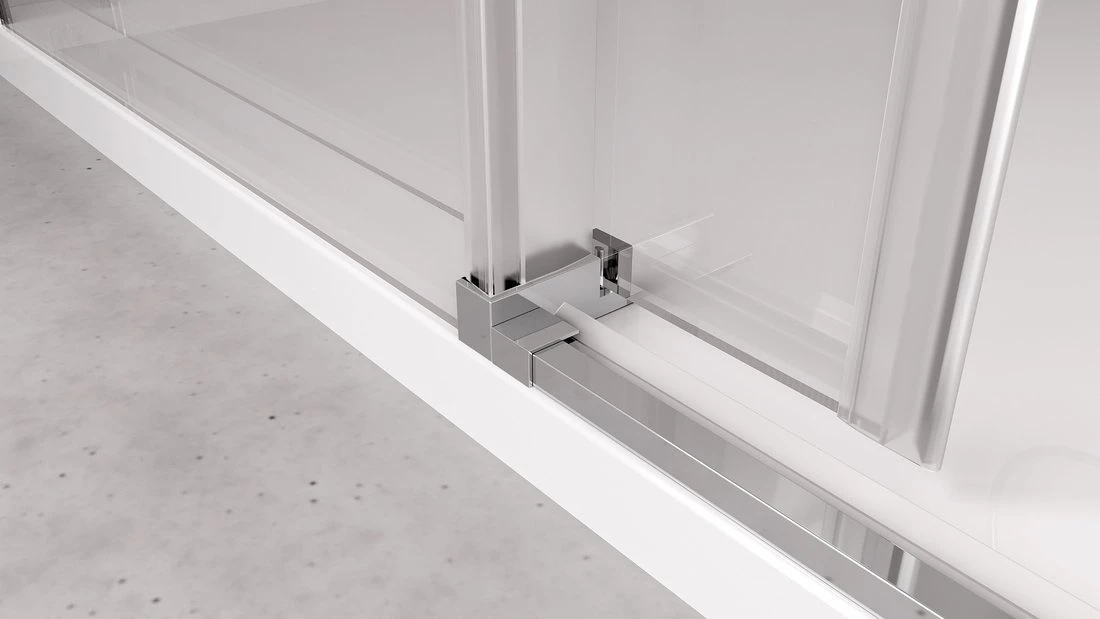 THRON - oblíbený design posuvných zástěn s minimalistickými pohledovými koly, která zajišťují tichý a lehký pohyb masivních skleněných dveří z čirého skla. Úchyty pojezdných kol v hranatém nebo kulatém provedení výrazně mění celkový vzhled dveří.