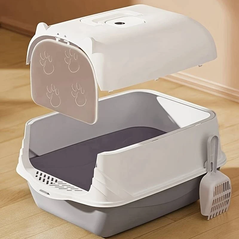 Praktická toaleta pro kočku nebo malé zvíře v moderním designu. Kočičí WC můžete mít i v místnostech, kde se často pohybujete, protože není tolik cítit. Kočky mohou jednoduše projít výklopnými dvířky. Součástí je uhlíkový filtr, jehož úkolem je snížit zápach.