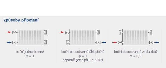 Poznámka: výkon radiátorů je udáván při teplotním spádu 90/70°C