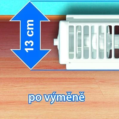 Typ rekonstrukční 22 - dvoudeskový radiátor se dvěma vnitřními konvektory s bočním připojením.
