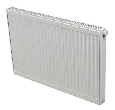 Typ VK 11 - jednodeskový radiátor s jedním vnitřním konvektorem a s integrovaným termostatickým ventilem Heimeier a spodním přípojením.