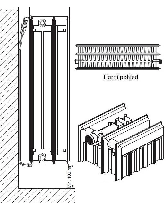 Rozteč vertikálních vodních kanálků: 33 1/3 mm