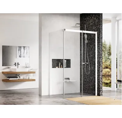 Výrobek se skládá ze sprchových dveřích dvoudílných (s jedním pevným dílem a s jedním pohyblivým, který tvoří posuvné dveře) a z pevné stěny jednodílné. Montuje se do obloženého rohu koupelny přímo na podlahu se zabudovaným odtokovým žlabem či podlahovou vpustí.