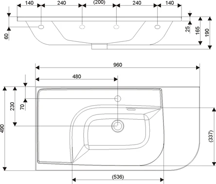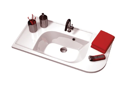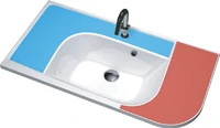 Druhá plocha (červená, suchá) je výše položená a slouží naopak k odkládání věcí,ze kterých nic neodkapává a není tudíž žádný důvod držet je v mokru. Váš fén na vlasy,či holící strojek tento přístup jistě ocení.Umyvadla jsou dodávána s otvorem pro stojánkovou baterii.