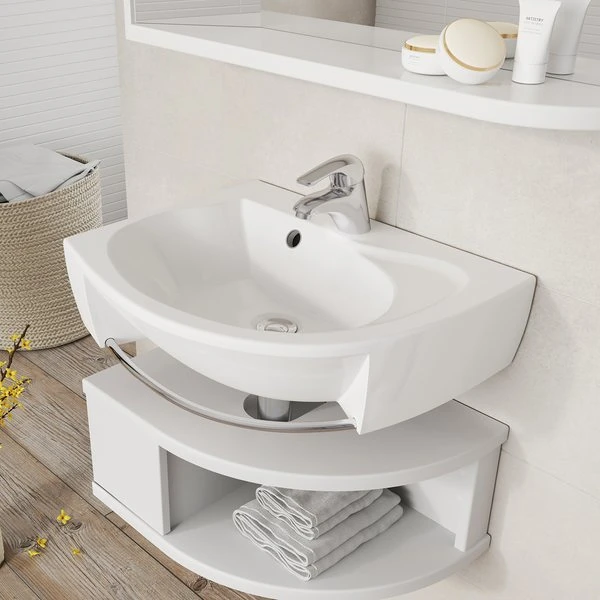 Umyvadlo Rosa je nejmenší umyvadlo ze série určené pro menší koupelny. Umyvadlo je dodáváno s přepadem, má praktickou odkládací plochu a sušák na ručníky. Umyvadlo Rosa lze instalovat na zeď nebo doplnit skříňkou pod umyvadlo SDU Rosa v odpovídající levé nebo pravé variantě. Pro ucelené řešení a designové sladění koupelny doporučujeme umyvadlo kombinovat s dalšími výrobky konceptu Rosa (zrcadlem M 560, vysokými skříňkami, umyvadlovou baterií), a ostatními výrobky RAVAK. Montážní sada (připojovací hmoždinky, vruty, atd.) včetně krytky přepadu je součástí dodávky.