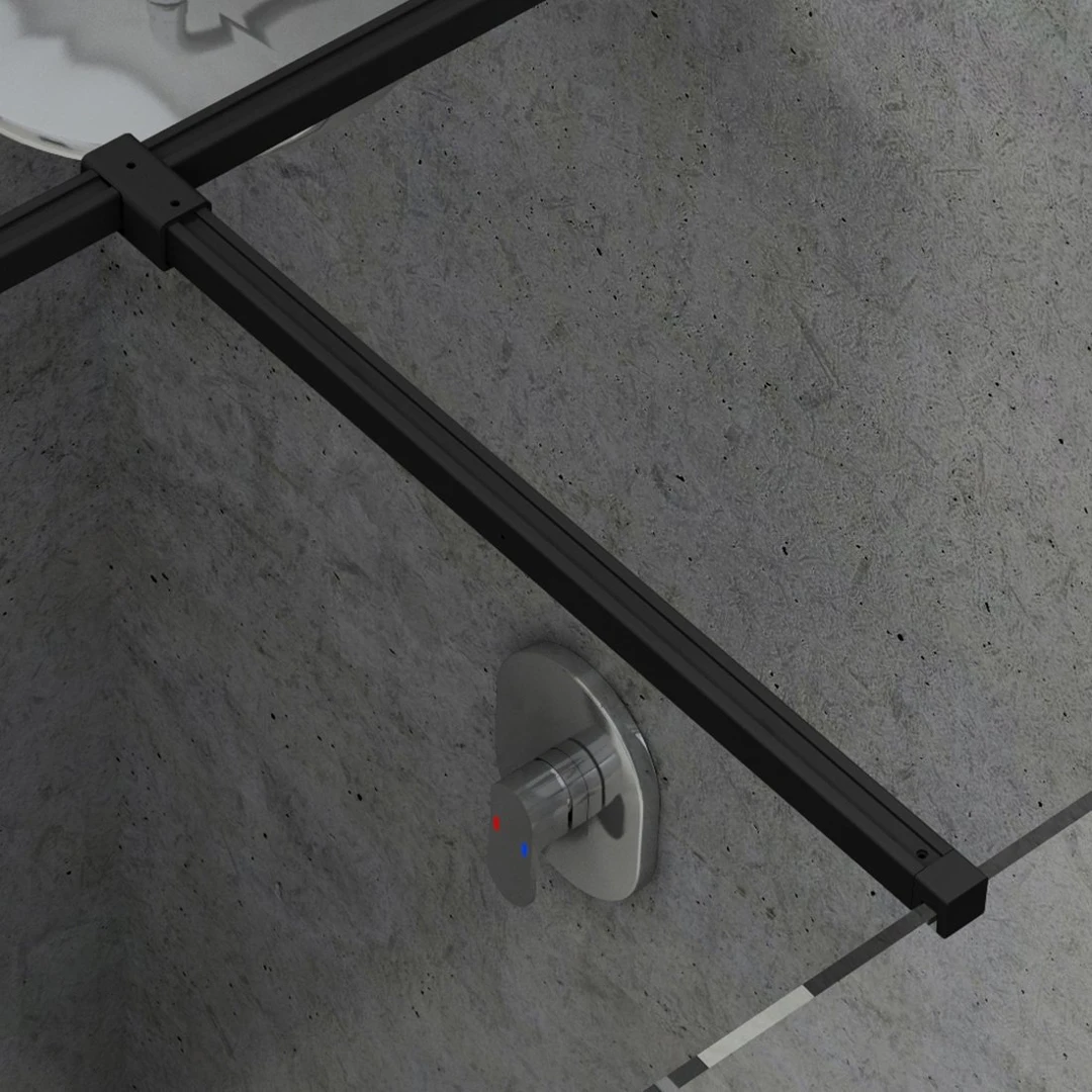 Set kovových částí pro sprchové kouty Walk-In Double Wall. Délka spojovací vzpěry je 1200 mm a určuje šířku vstupu. Lze ji libovolně zkrátit.