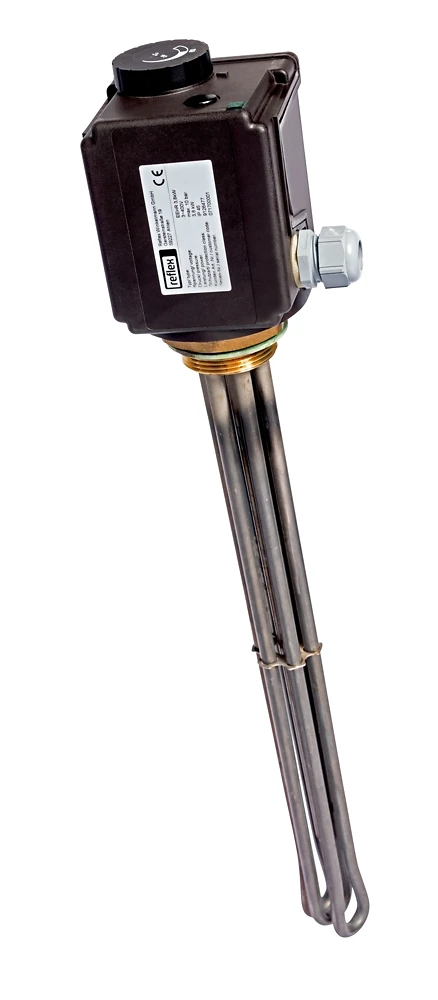 Elektrické závitové topné těleso pro elektrické přídavné vytápění pro Reflex Storatherm Heat akumulační zásobníky teplé vody a Reflex zásobníkové ohřívače vody s příslušnou možností montáže do kontrolního otvoru. Regulátor teploty do 95°C nastavení požadované hodnoty a připojovací svorkovnice je integrováno. Hydraulické a elektrické připojení je dodávkou stavby. Tvrdost vody max. 14°dH, není schválené pro trvalý provoz. Typ: EEHR 6.00