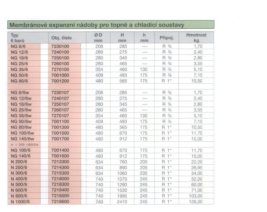 Nabízíme je v objemech 8 - 10000 litrů, 3/6/10 barů, pro soustavy s teplotou výstupní větve do 120 °C, teplota na membránu do 70 °C*.