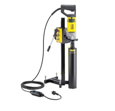 Elektrická diamantová jádrová vrtačka pro jádrové vrtání v železobetonu do Ø 102 (132) mm, ve zdivu do Ø 162 mm. K vrtání na sucho nebo na mokro, ručně vedené nebo s vrtacím stojanem. Pohonný stroj s připojovacím závitem vrtací korunky UNC 11/4 vnějším, G 1/2 vnitřním, převody pracujícími bez údržby s bezpečnostní kluznou spojkou, univerzálním motorem 230 V, 50–60 Hz, 1800 W, multifunkční elektronikou, dotekovým spínačem s aretací, osobním ochranným spínačem (PRCD). Otáčky při zatížení vrtacího vřetena 580 ¹/min. Zařízení na přívod vody, s uzavíracím ventilem, rychlospojkou s možnou blokací průtoku vody a hadicovou přípojkou 1/2”. Protisměrný držák. Navrtávací pomůcka G 1/2 s vrtákem Ø 8 mm, šestihranný klíč SW 3.Jednostranný klíč SW 32. V pevném kufru z ocelového plechu.