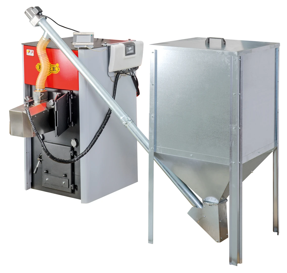 Díky zásobníku paliva, elektronické regulaci a hořáku, může kotel pracovat v automatickém režimu i několik dní. Kotel ROJEK KTP 20 PELLET se dodává standardně bez zásobníku, ten se může objednat zvlášť. Nabízíme zásobník plechový ROJEK 300 l nebo 500 l, nabízíme zásobník plechový skládací 300 l nebo 600 l.