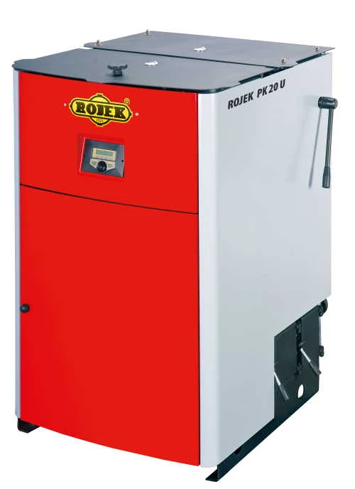 Pyrolytický kotel ROJEK PK 20 U na ruční přikládání je určen ke spalování hnědého uhlí Ořech 1 (20 - 40 mm), vlhkost paliva max. do 15 %, výhřevnost 14 - 20 MJ/kg, nebo hnědého uhlí Kostka (40 - 100 mm).