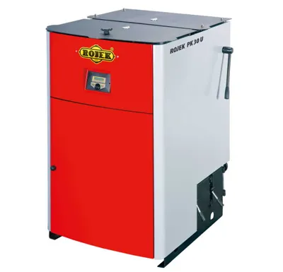 Pyrolytický kotel ROJEK PK 30 na ruční přikládání je určen ke spalování palivového dřeva - kusové dřevo o délce 530 mm, vlhkost paliva do 20 %, výhřevnost 14 - 18 MJ/kg, nebo hnědého uhlí Ořech 1 (20 - 40 mm), vlhkost paliva max. do 15 %, výhřevnost 14 - 20 MJ/kg. Kotel je certifikován ve Třídě 4 na palivo hnědé uhlí a palivo dřevo dle ČSN EN 303-5. Kotlové těleso je svařeno z jakostní oceli. Všechny plochy, které jsou ve styku se spalinami jsou z plechu tl. 5 mm. Ostatní plochy jsou z plechu tl. 4 mm.