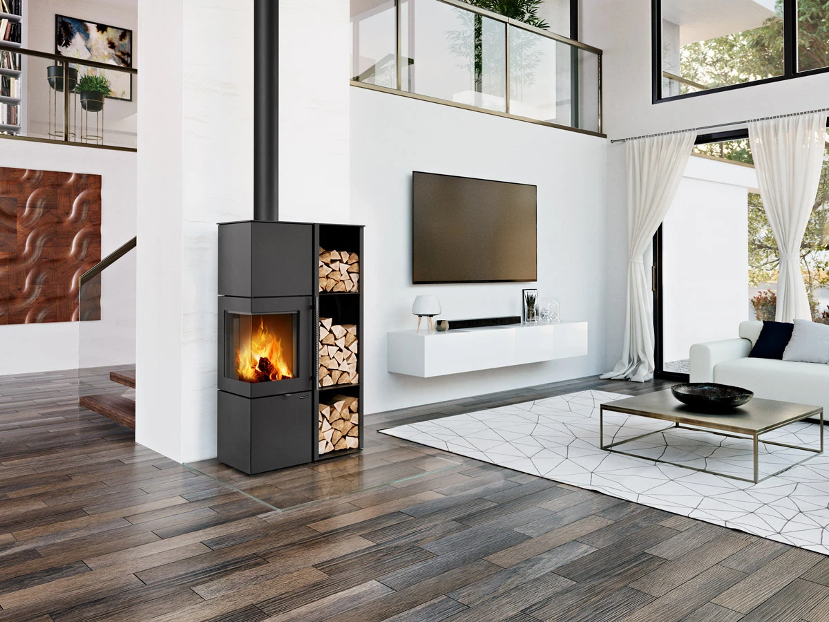 Vysoká účinnost: Efektivní spalování s nízkými emisemi a vysokou účinností přeměny dřeva na teplo.