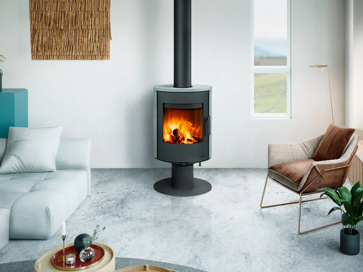 Krbová kamna jsou vhodná pro nízkoenergetické domy. Disponují systémem CPV – centrální přívod externího vzduchu. Ve standardu je možné zapojení horního odvodu spalin. Díky sekundárnímu přívodu vzduchu je sklo dvířek omýváno a tak nedochází k usazování nečistot. Spalovací komora je vyložena šamotovými tvarovkami. Regulaci primárního a sekundárního přívodu vzduchu lze řídit jediným ovládacím prvkem. Otáčivé topeniště nabízí uživateli pohled do ohně z různých úhlů.]]>| Výška | 997 mm |