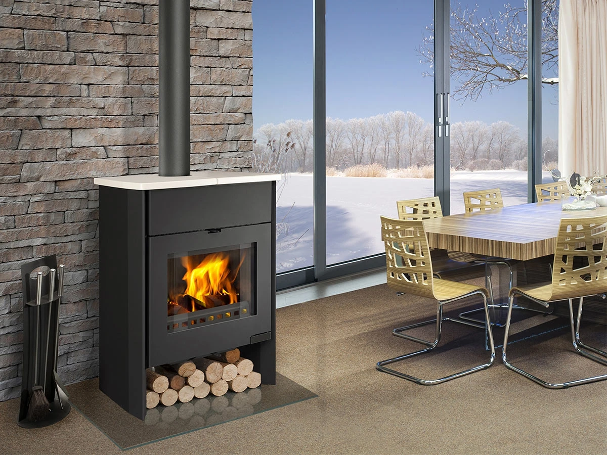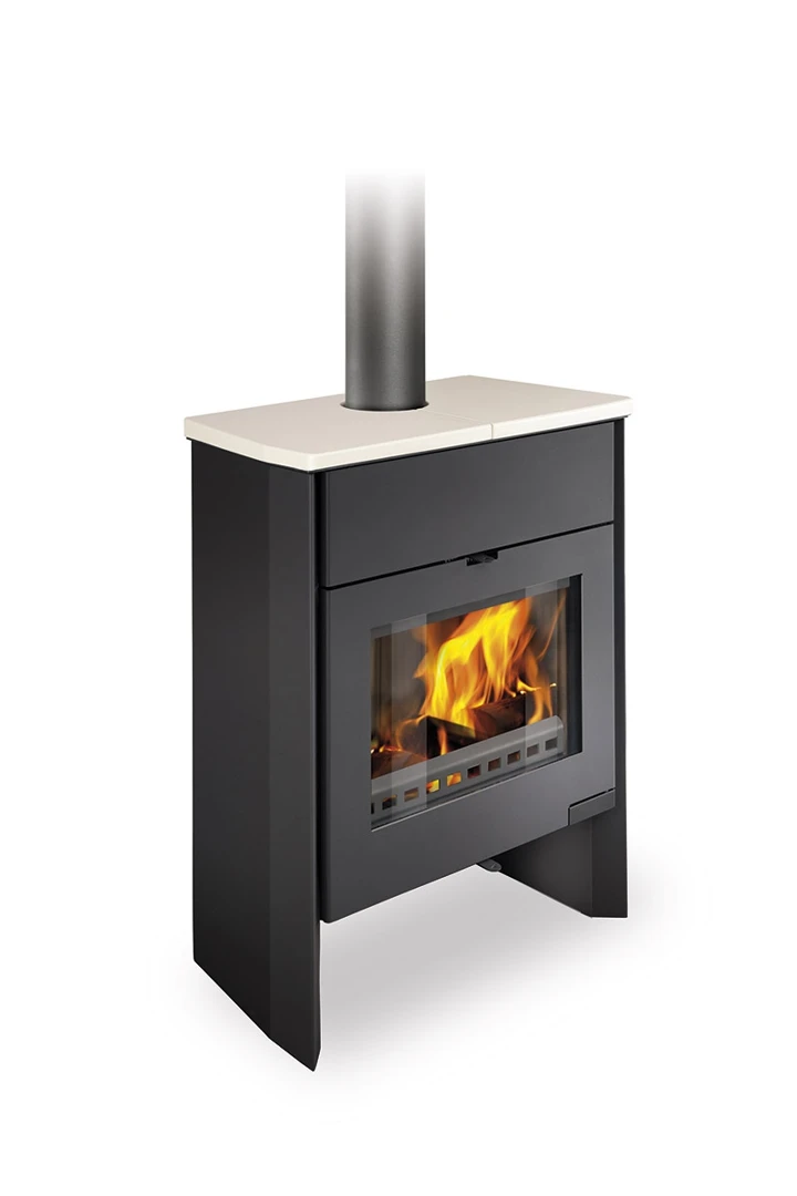 Teplovodní krbová kamna dobře vytopí i větší prostory. Účinný teplovodní výměník o objemu 58 l dokáže přenést do vody 70 % energie a 30 % do vzduchu. Speciální patentovaná konstrukce teplovodního výměníku TRIPLE PASS dokáže přenést maximální množství energie do vody. Ve standardu je možné zapojení horního odvodu spalin. Díky sekundárnímu přívodu vzduchu je sklo dvířek omýváno, a tak nedochází k usazování nečistot. Spalovací komora je vyložena šamotovými tvarovkami. Regulaci primárního a sekundárního přívodu vzduchu lze řídit jediným ovládacím prvkem. Ve spodní části kamen je uzavíratelný dřevník, který umožnuje uskladnění menší zásoby dřeva nebo krbového nářadí. Kamna jsou vybavena vychlazovací smyčkou. Na tento výrobek je možné čerpat dotaci z programu Nová zelená úsporám.
