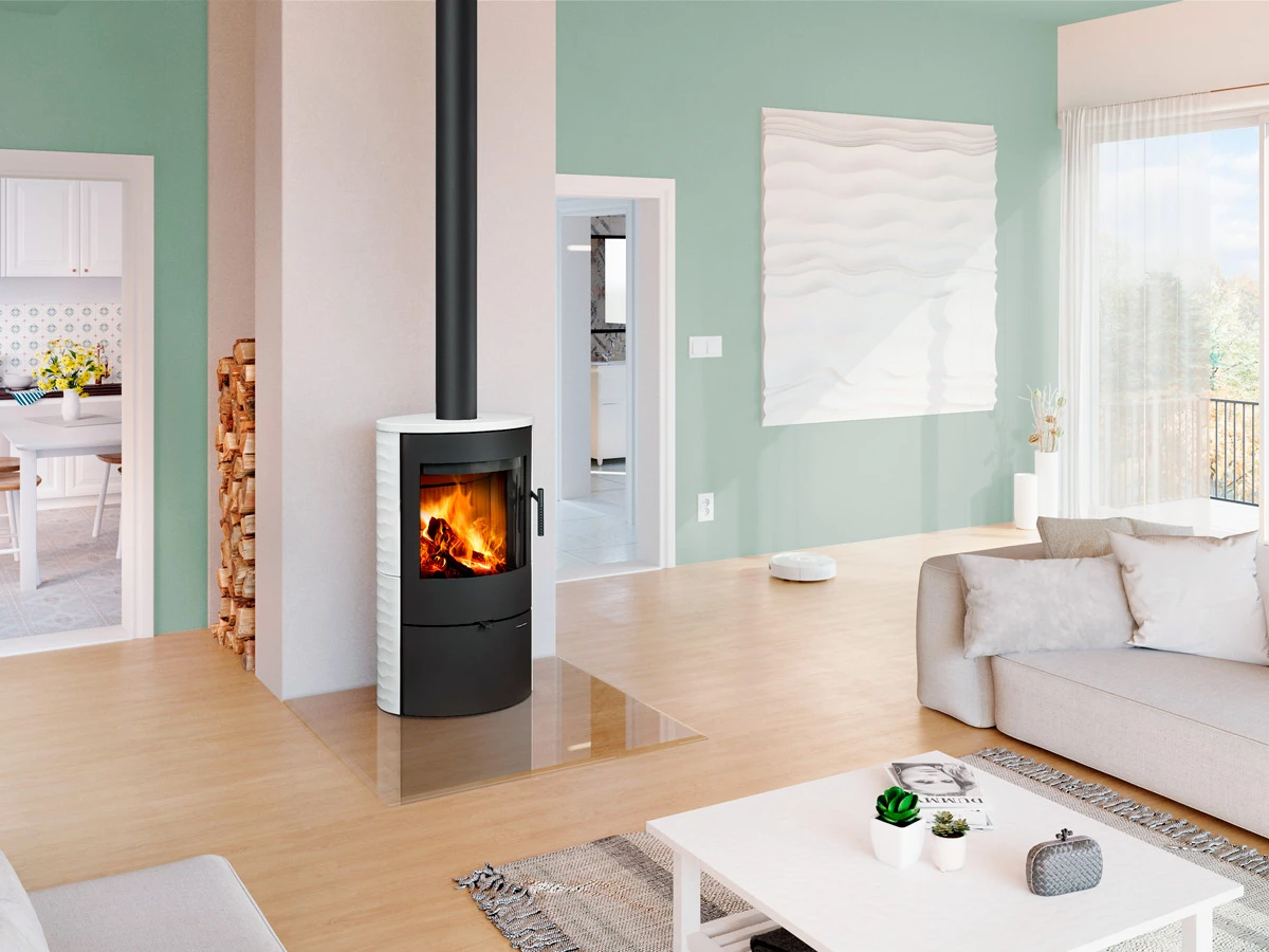 Krbová kamna SONE 10 s keramickým obkladem „vlnka“ jsou ideální volbou pro milovníky detailů. Tradiční keramika zde získává moderní, dynamickou podobu díky jemnému reliéfu vlnobytí. Tato struktura nejen oživuje vzhled kamen, ale také zvětšuje sálavou plochu keramiky, což přispívá k efektivnějšímu předávání tepla do místnosti.