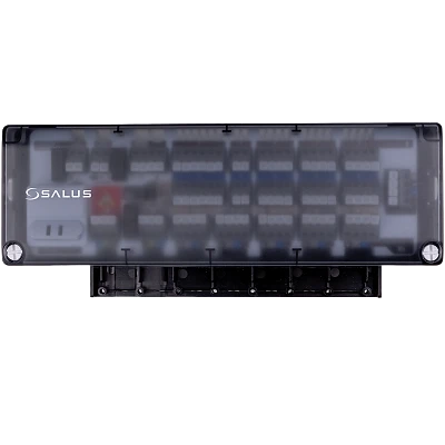 Centrální svorkovnice SALUS CB500 je hlavním prvkem systému podlahového vytápění / chlazení. Má zabudovaný modul, který řídí zdroje vytápění a chlazení. Umožňuje ovládat 5 různých zón, které je možné navýšit až na 15 zón pomocí dalších rozšiřovacích modulů CB500X (hlavní centrální svorkovnice CB500 + 2 rozšiřovací moduly CB500X).