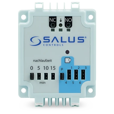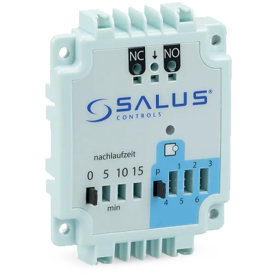 Modul SALUS PL06 rozšiřuje funkčnost centrální svorkovnice SALUS KL06. Používá se k ovládání čerpadla nebo kotle pomocí beznapěťových kontaktů COM/NO/NC.