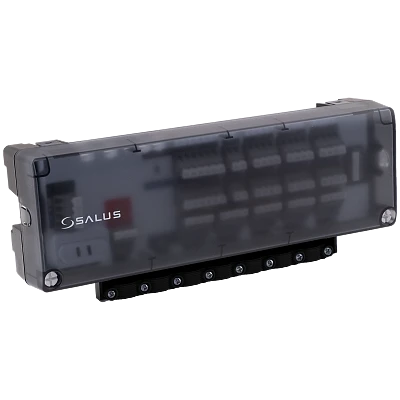 Rozšiřující modul SALUS CB500X slouží k rozšíření řídicí jednotky SALUS CB500 pro podlahové vytápění a chlazení. Každý modul přidává dalších 5 ovládaných zón, přičemž systém lze rozšířit až na 15 zón (CB500 + 2× CB500X). Připojení je rychlé a bezproblémové díky pružinovým svorkám, které zajišťují snadnou instalaci bez použití nástrojů.Modul je navržen pro spolupráci s termoelektrickými pohony typu NC (bez napětí uzavřené).
