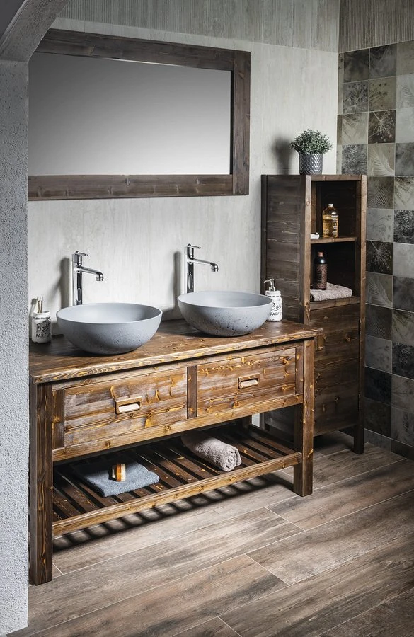 Bývalo pravidlem, že jednoduchý a vzdušný styl koupelny byl zastoupen pouze moderním nábytkem, pro který byly použity materiály typu ocel, sklo a umělý kámen a který striktně dodržoval minimalistický technostyl. Naše série BRAND tento mýtus boří. Díky propracovanému návrhu tvarů a použitých materiálů nabízí jednoduchý a vzdušný tvar. Použití masivního dřeva přímo vybízí k návrhu koupelny ve středomořském duchu. Nabídku umyvadlových skříněk s keramickým umyvadlem šířky 60 a 80 cm a umyvadlových stolků šířek 80, 100, 130 a 160 cm pro umyvadla na postavení doplňuje vysoká doplňková skříňka.