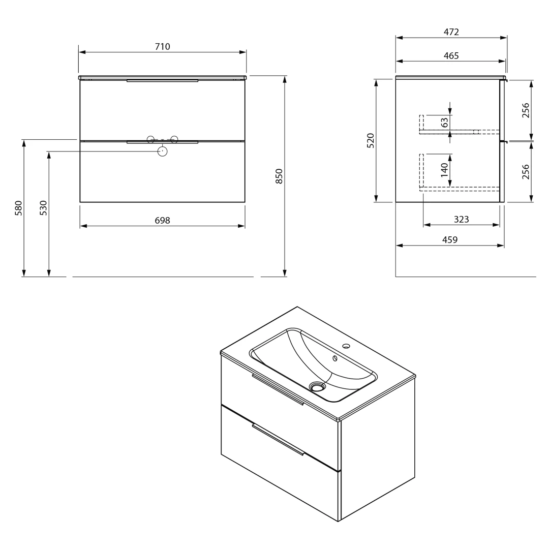 Série CIRASA nabízí zásuvkové skříňky s umyvadly z litého mramoru SIDRA a se 3 typy tenkých keramických umyvadel PIEDRA, PRACTICO a SLIM. Umyvadla PRACTICO mají hloubku pouhých 40 cm, jsou proto vhodná do koupelen menších rozměrů. Skříňky s umyvadlem SIDRA, PIEDRA nebo SLIM lze kombinovat se spodní dvířkovou skříňkou. U skříněk s šířkou 70, 80 a 100 cm lze umyvadlo nahradit deskou pro umyvadlo na postavení. Tím vzniká více rozměrových a designových variant. Skříňky jsou dodávány s úchytkami v chromovém provedení, ale lze dokoupit i jiné typy úchytek.