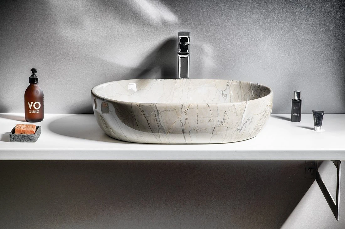 Série keramických umyvadel DALMA zaujme kamenným efektem. Umyvadla jsou glazovaná s vypálenými obtisky v designu kamene, čímž je zaručena stálost a trvanlivost dekoru. Vybírat můžete nejen ze tří dekorů v odstínech mramoru, ale i z pěti tvarů. Umyvadla jsou určena k postavení na desku, ke všem lze dokoupit uzavíratelnou výpust v barvě umyvadla.