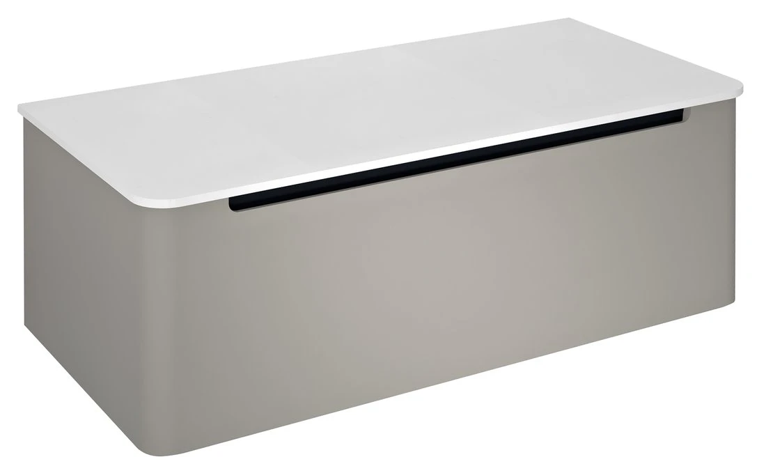 Lakovaná série nábytku KERALA pro umyvadla na postavení v moderních matných barvách se vyznačuje výrazným designovým prvkem - zaoblenými boky a čelem zásuvky. Skříňky jsou jednozásuvkové, bezúchytkové a s plynulým dovíráním. V nabídce jsou 2 typy desek o tl.12 mm: bílá matná Rockstone a černá matná kompaktní deska PREMIO z vysokotlakého laminátu. Umyvadlo na desku lze libovolně umístit po celé šířce skříňky. Umyvadlové skříňky nabízíme v šířkách 80, 100, 120 a 140 cm a lze je doplnit o vysokou dvířkovou skříňku ve stejném oblém designu.