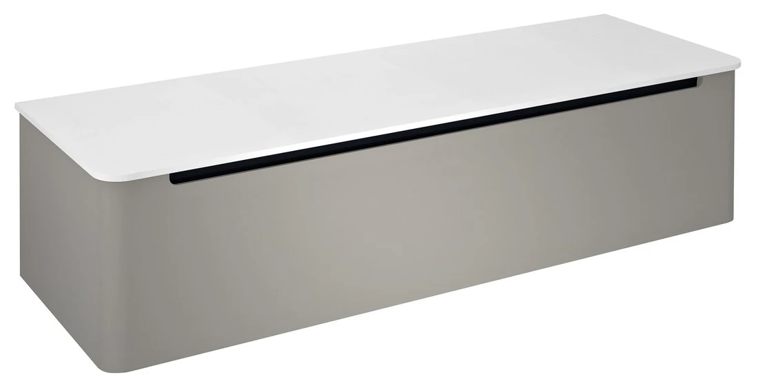 Lakovaná série nábytku KERALA pro umyvadla na postavení v moderních matných barvách se vyznačuje výrazným designovým prvkem - zaoblenými boky a čelem zásuvky. Skříňky jsou jednozásuvkové, bezúchytkové a s plynulým dovíráním. V nabídce jsou 2 typy desek o tl.12 mm: bílá matná Rockstone a černá matná kompaktní deska PREMIO z vysokotlakého laminátu. Umyvadlo na desku lze libovolně umístit po celé šířce skříňky. Umyvadlové skříňky nabízíme v šířkách 80, 100, 120 a 140 cm a lze je doplnit o vysokou dvířkovou skříňku ve stejném oblém designu.