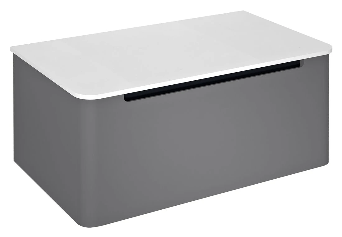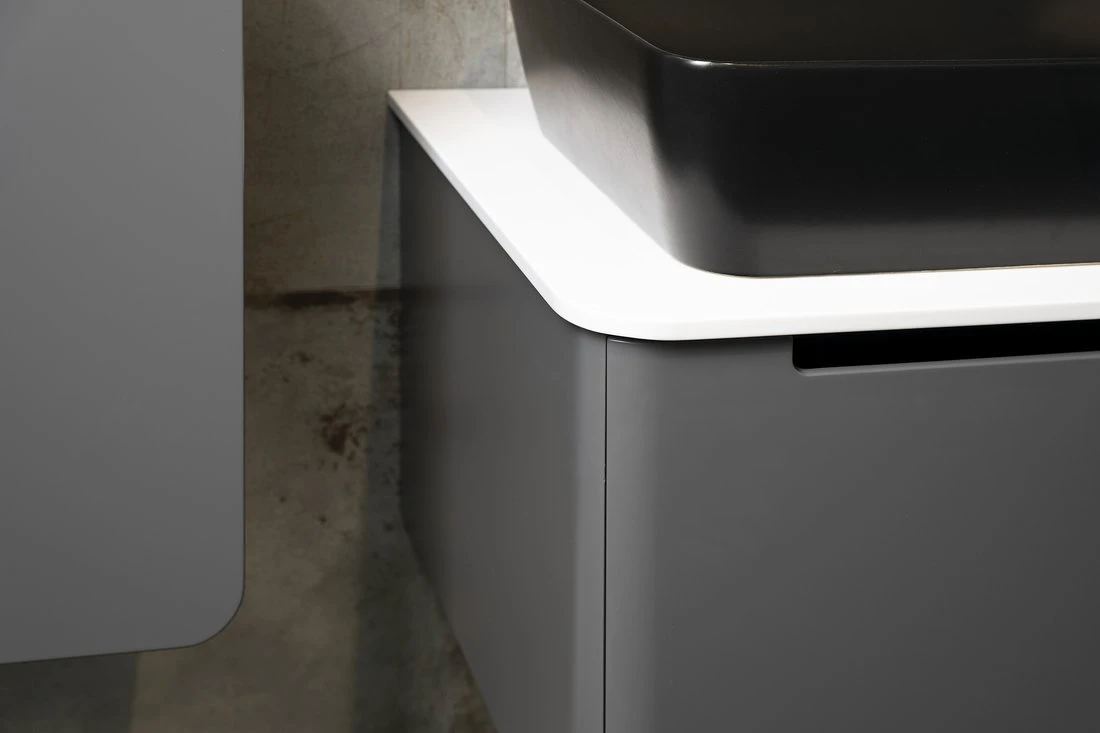 Lakovaná série nábytku KERALA pro umyvadla na postavení v moderních matných barvách se vyznačuje výrazným designovým prvkem - zaoblenými boky a čelem zásuvky. Skříňky jsou jednozásuvkové, bezúchytkové a s plynulým dovíráním. V nabídce jsou 2 typy desek o tl.12 mm: bílá matná Rockstone a černá matná kompaktní deska PREMIO z vysokotlakého laminátu. Umyvadlo na desku lze libovolně umístit po celé šířce skříňky. Umyvadlové skříňky nabízíme v šířkách 80, 100, 120 a 140 cm a lze je doplnit o vysokou dvířkovou skříňku ve stejném oblém designu.