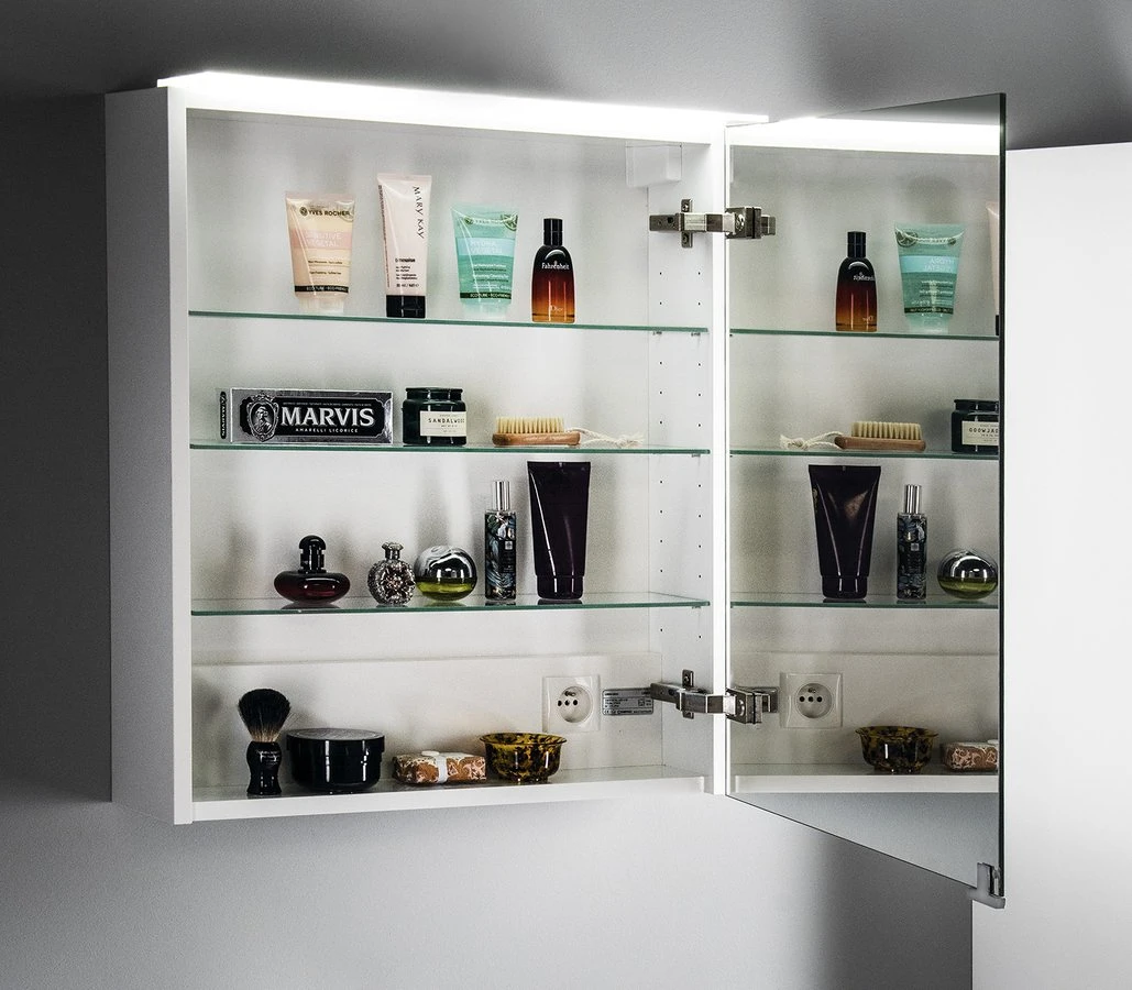 Galerky LINEX – skleněné nastavitelné police poskytují dostatek místa pro uskladnění kosmetiky, hygienických potřeb i holicího strojku. Navíc i při otevření galerky můžete používat zrcadlo díky oboustranným zrcadlovým dvířkům. Dovírání dvířek s dotahem zajišťuje značkové kování GRASS. Výkonné LED osvětlení v liště po celé šířce galerky zajistí dostatek osvětlení a ovládá se pomocí externího vypínače. Pro větší komfort ovládání osvětlení lze dokoupit bezdotykovou senzorovou sadu. Samozřejmostí je elektrická zásuvka a designová úchytka dvířek. K vybraným rozměrům nabízíme také závěsnou skleněnou poličku.