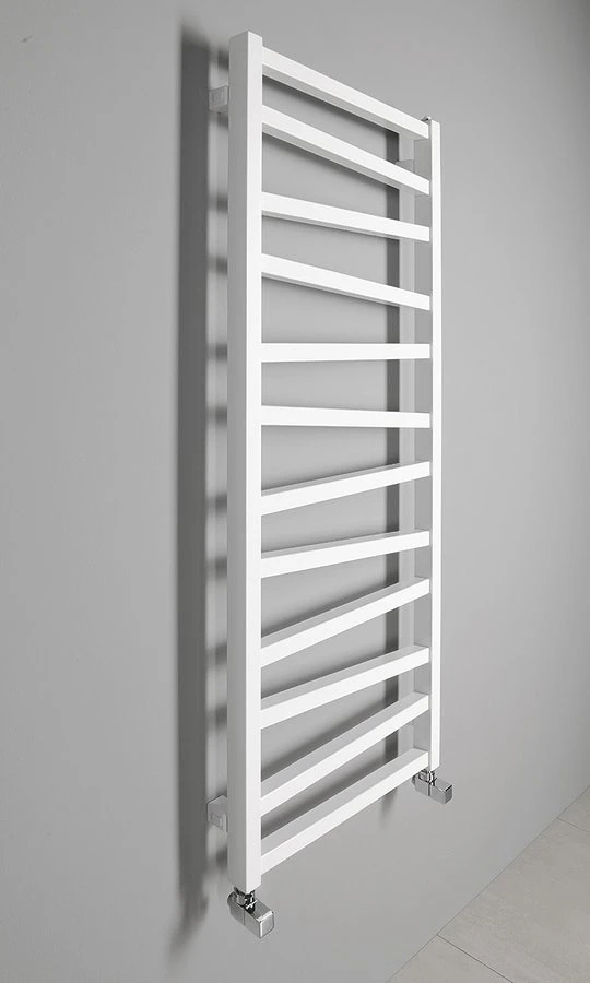 Otopné těleso s různoběžnými středovými trubkami podtrhne design koupelny. Možná kombinace ústředního a elektrického vytápění. V nabídce v barvách bílá, strukturální antracit a černá mat.