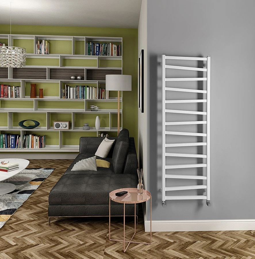 Otopné těleso s různoběžnými středovými trubkami podtrhne design koupelny. Možná kombinace ústředního a elektrického vytápění. V nabídce v barvách bílá, strukturální antracit a černá mat.