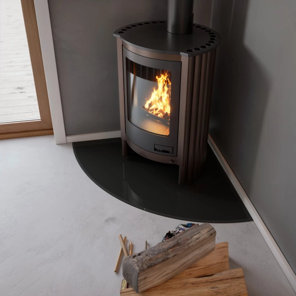 Luxusní černěné tvrzené sklo pod kamna je elegantní a praktický doplněk, který chrání podlahu před žárem, popelem a případnými jiskrami. Je vyrobeno z tepelně tvrzeného bezpečnostního skla o síle 6 mm, které nabízí vysokou odolnost vůči teplu i mechanickému poškození. Povrch je opatřen stylovým černěním, které dodává celému prostoru moderní a prémiový vzhled. Hrany skla jsou precizně opracované do fazety, což zajišťuje nejen bezpečnost, ale i perfektní vzhled.