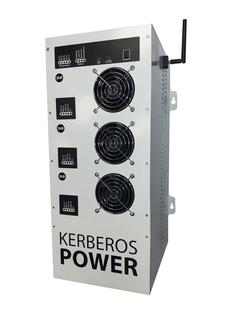 Kerberos Power je modulární fotovoltaický systém určený pro efektivní ohřev vody pomocí solární energie. Funguje v ostrovním režimu, což znamená, že topná část je oddělena od elektrické sítě a je napájena výhradně fotovoltaickými panely. Elektrická síť slouží pouze k napájení řídicí jednotky a komunikačního modulu.