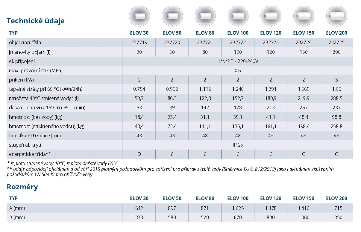 Zařízení ELOV 30 až 200 splňují náročná kritéria normy EN 50440, směrnici o efektivitě a spotřebě energie zařízení pro ohřev vody, která co nejdříve vstoupí v platnost. Tím potvrzují svojí úspornost a nízkou provozní energetickou náročnost.