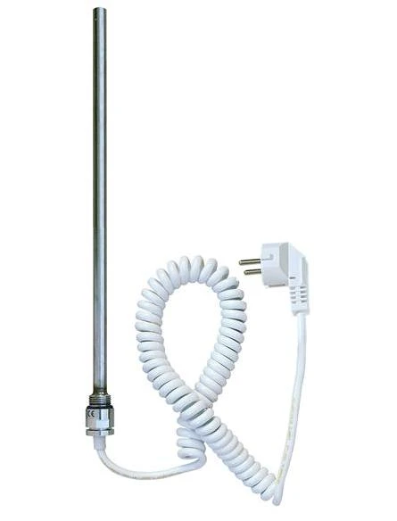 Topná tyč EL 05 800W s praktickým krouceným (spirálovým) kabelem představuje vrchol efektivity pro ty největší otopné žebříky na trhu. Pokud máte v koupelně instalované rozměrné těleso, tato tyč zajistí jeho rovnoměrné nahřátí od spodní příčky až po tu nejvyšší, a to ve velmi krátkém čase.