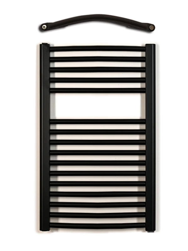Model Thermal KDO 450/730 v provedení černý mat je stylovým a prostorově úsporným řešením pro menší koupelny nebo oddělené toalety. Prohnutý profil (KDO) v kombinaci s matně černým lakem (RAL 9005) vytváří moderní, plastický prvek, který je nejen estetický, ale i vysoce funkční.