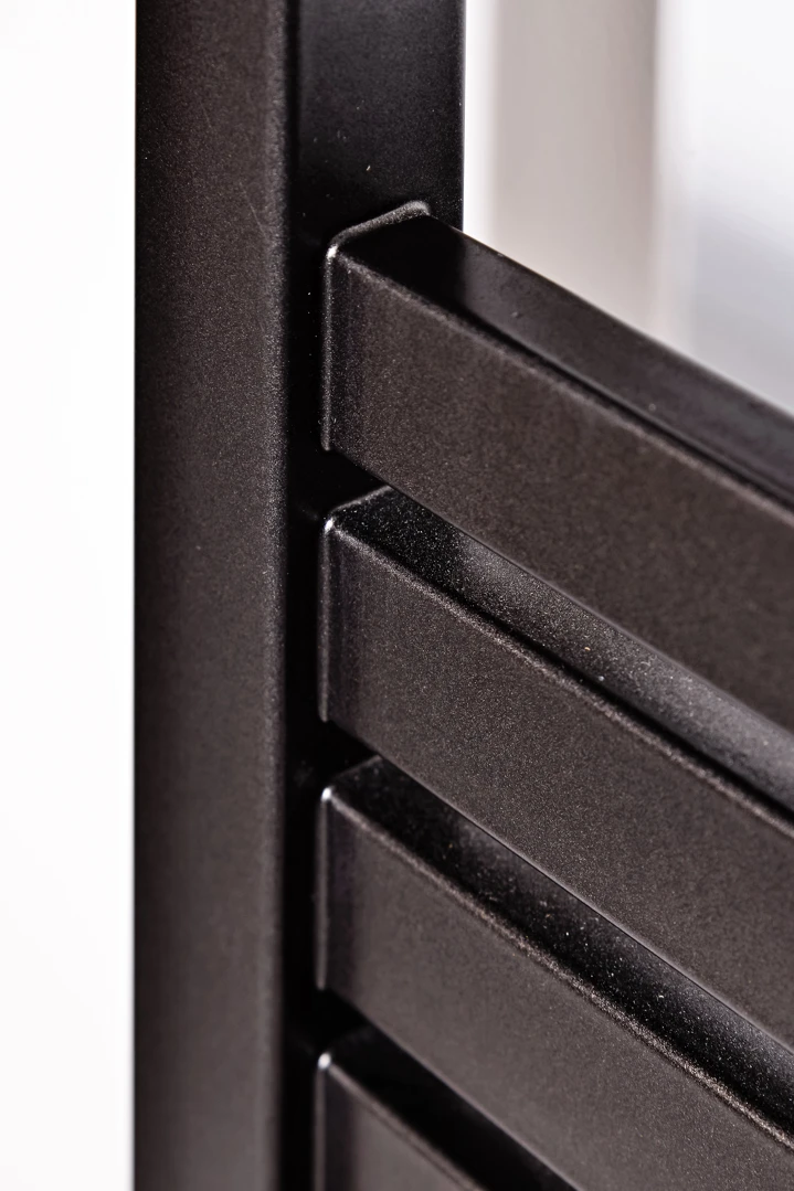 Model Thermal KH 600/1330 v provedení černý mat představuje klasickou, minimalistickou variantu koupelnového žebříku. Na rozdíl od modelů KDO (obloukových) má tato řada rovné vodorovné příčky, což z ní dělá ideální volbu pro moderní, geometricky čisté koupelny.