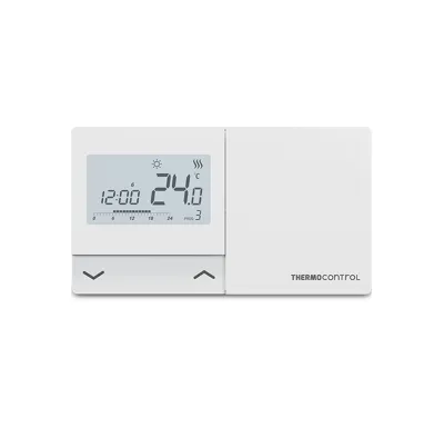 TC 910 je programovatelny´ termostat, ktery´ slouží k drátovému ovládání vytápěcích a chladících zařízení. Jeho úkolem je udržovat komfortní podmínky v místnosti v souladu s harmonogramem nebo stálou teplotou nastavenou uživatelem. Připojuje se přímo k zařízení.